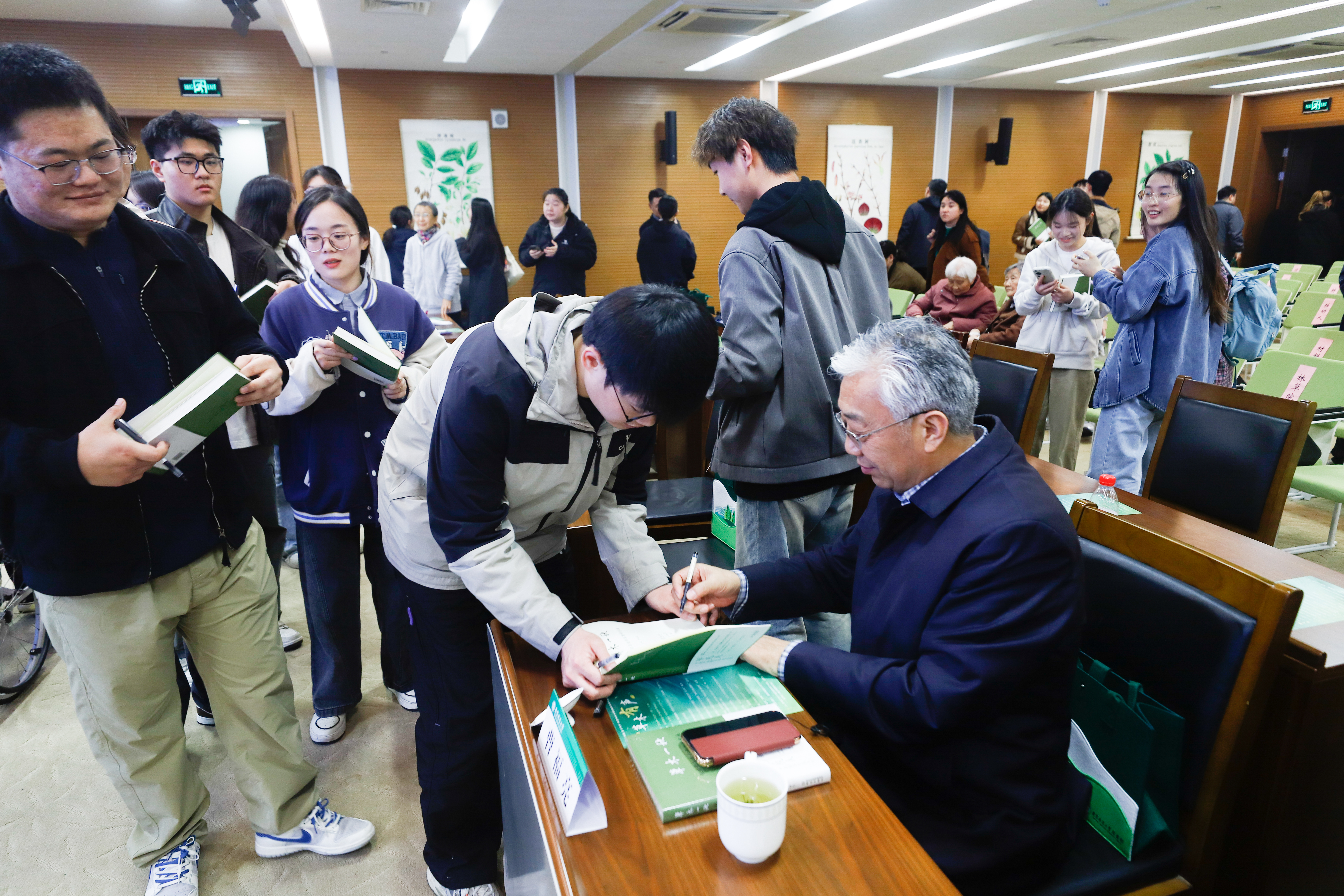 活动现场,曹福亮院士、张晓琴副校长、董博部长分别为2025年度“林韵书香·领读者”“林韵书香·耕研人”“林韵书香·笃学星”获奖师生颁奖。活动最后,曹福亮院士与张晓琴副校长向各学院学生代表赠送了由张世经老先生亲笔签名的《草木一秋》一书,并与张世经老先生一同合影留念。会后,与会师生有序参观了会场内外的张世经先生植物科学画原作。
